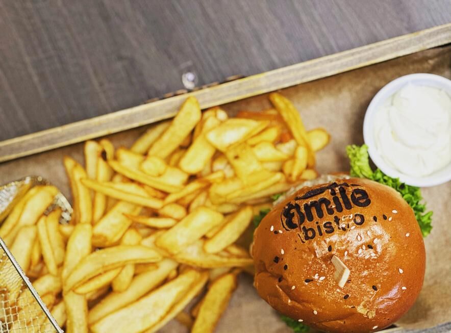 Gustați din bucătăria noastră de casă sau din fast foodurile noastre delicioase, creați cu dedicație și pasiune de bucătarii noștri. La bistroul nostru puteți savura selecția noastră de mâncăruri carbonara și supe, precum și cafea proaspătă și bere răcoritoare, care ne aduc renume. Dulciurile noastre au renume: mulți trec pe la noi să-și satisfacă pofta de ceva dulce savurând prăjiturile noastre gustoase cu brânză precum și vafele noastre ca gustare între mese. Vă așteptăm mereu cu un mic splendid dejun, un brunch splendid, un prânz delicios sau o cină excelentă. În bistroul nostru puteți folosi Wi-Fi-ul gratuit, ca să navigați pe internet și să rămâneți cu prietenii și rudele. Am amenajat o zonă separată, confortabilă, pentru oaspeții fumători.